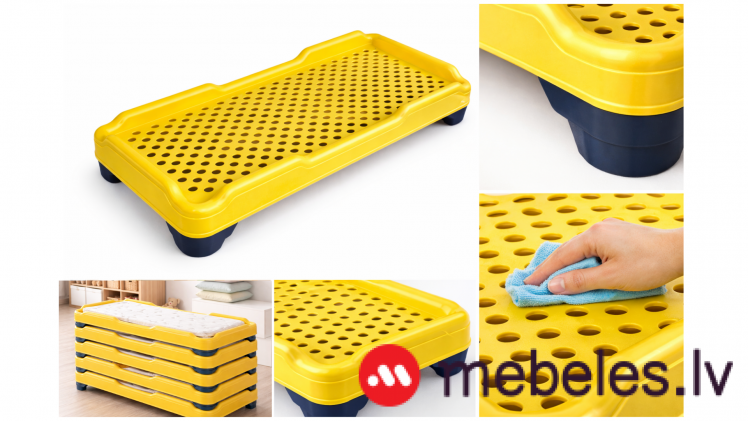 Vieglā, bet izturīgā plastmasas gultiņa ir radīta praktiskai ikdienas lietošanai. Tās minimālistiskais dizains lieliski iederas mūsdienīgā bērnudārza vidē, savukārt perforētā virsma nodrošina labu gaisa cirkulāciju un higiēnisku un viegli kopjamu virsmu.