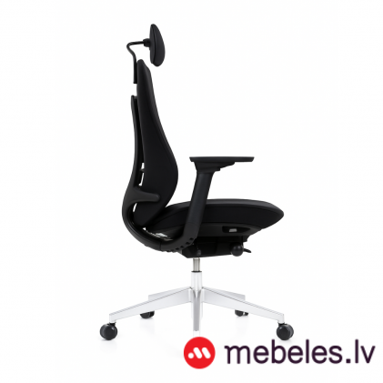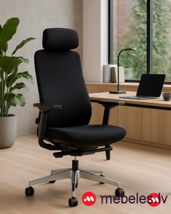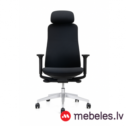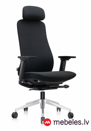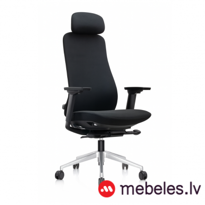 Biroja krēsls ar regulējamu galvas balstu. Krēslam ir augstas kvalitātes audums, melnā tonī. Atzveltnē iestrādāts regulējams jostas vietas balsts, nodrošinot ergonomisku sēdēšanu. Tāpat krēslam iestrādāta sēdes dziļuma regulēšanas funkcija, krēslu viegli pielāgot jebkura vajadzībām.
