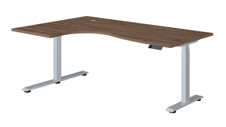 Elektriski augstumā regulējams stūra galds ar 2-motoru rāmi LIVO. Ērts un praktisks stūra galds.