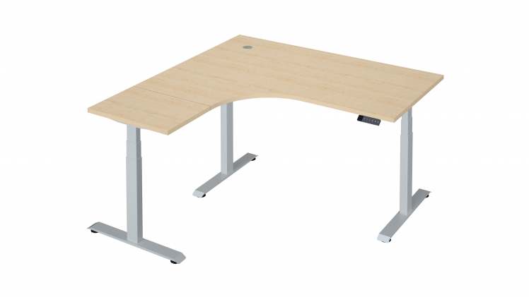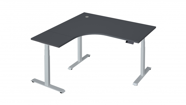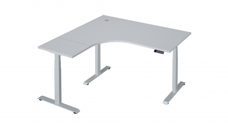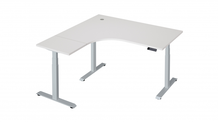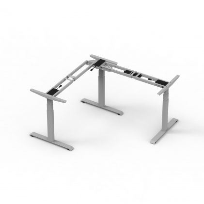 Ļoti stabil, elektriski augstumā regulējams stūra galds ar 3- motoru rāmi MAJOR. Galdam ir trīs kājas, kas rada īpašu stabilitāti, pat lielākiem galdiem.