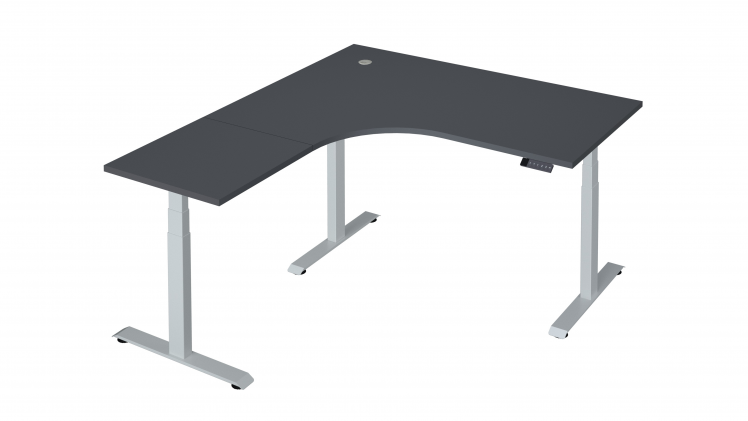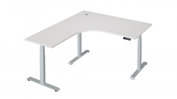 Ļoti stabil, elektriski augstumā regulējams stūra galds ar 3- motoru rāmi MAJOR. Galdam ir trīs kājas, kas rada īpašu stabilitāti, pat lielākiem galdiem.