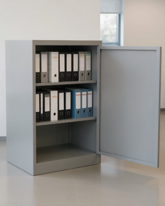 Metāla dokumentu skapis, kas apvieno modernu dizainu, izturīgu konstrukciju un pārdomātu iekšējo izkārtojumu. Ideāli piemērots birojiem, izglītības iestādēm un citām publiskām telpām, kur svarīga ir droša un ērta dokumentu uzglabāšana.